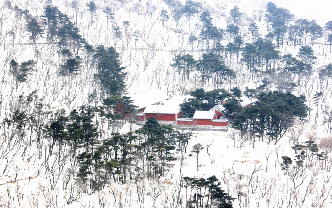 红墙青松映白雪,古色古香韵味足。雪后,红墙小院、傲雪青松与皑皑白雪相互映衬,活脱脱勾勒出一幅禅意悠远的水墨画。