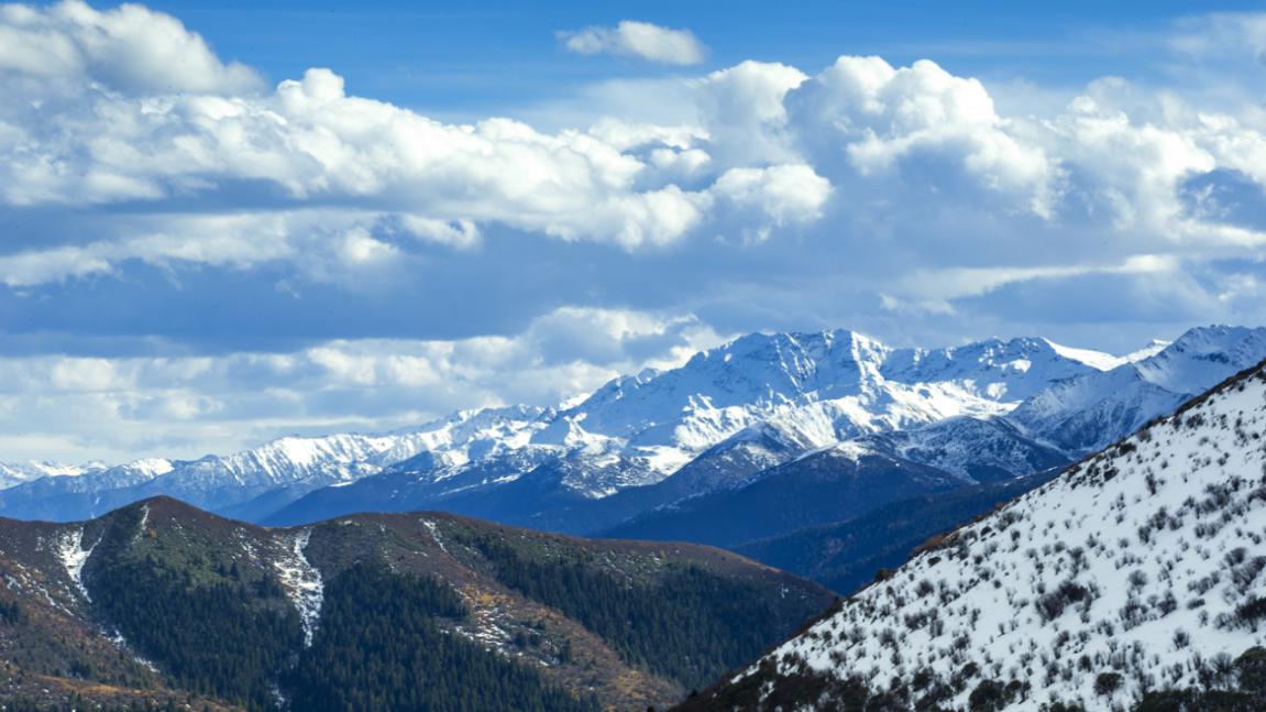 雪过天晴山覆白,云开见日天蔚蓝。皑皑雪山与蓝天白云,交相呼应,一派冬日雪景美不胜收。