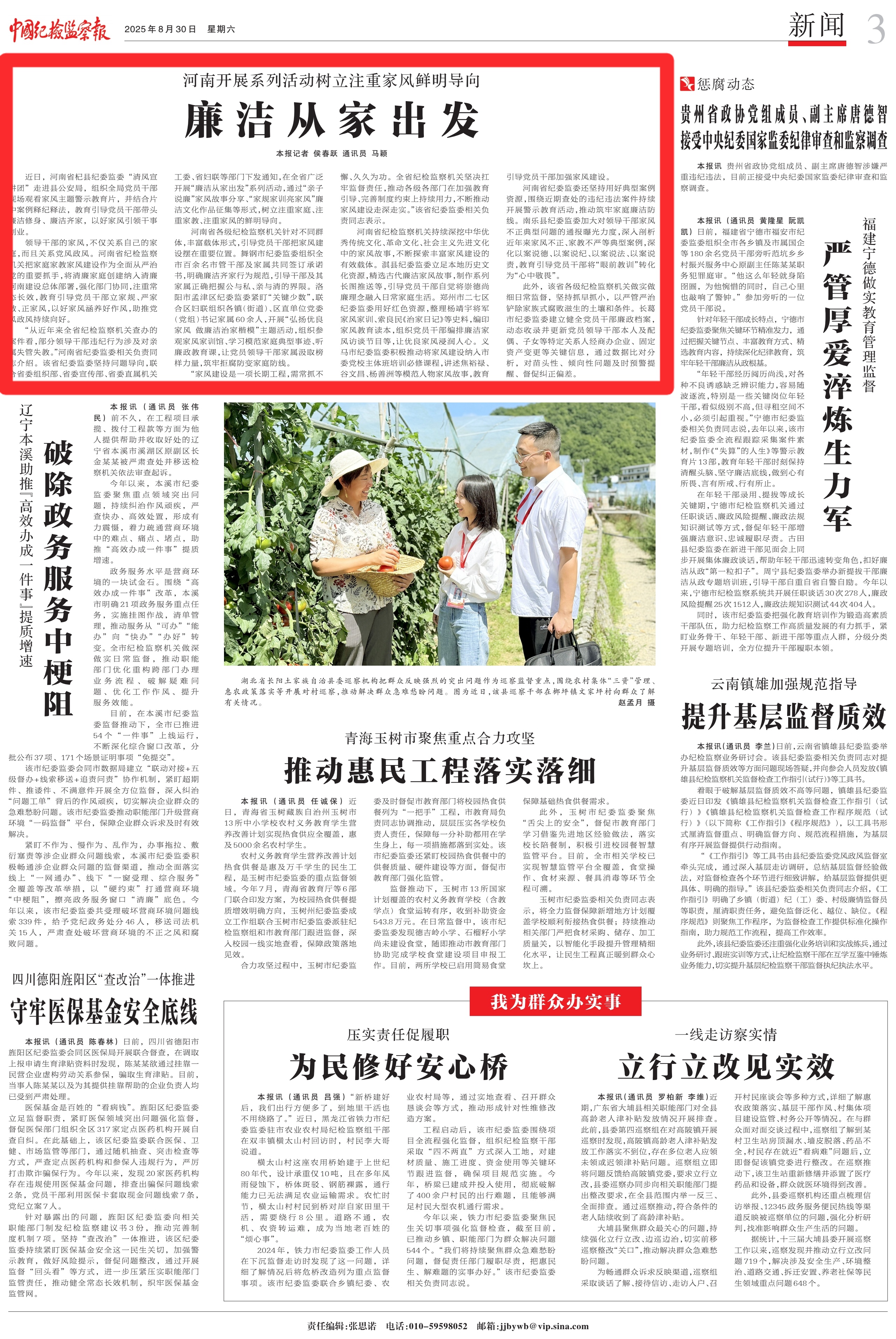 “从近年来全省纪检监察机关查办的案件看,部分领导干部违纪行为涉及对亲属失管失教。”河南省纪委监委相关负责同志介绍。该省纪委监委坚持问题导向,联合省委组织部、省委宣传部、省委直属机关工委、省妇联等部门下发通知,在全省广泛开展“廉洁从家出发”系列活动,通过“亲子说廉”家风故事分享、“家规家训亮家风”廉洁文化作品征集等形式,树立注重家庭、注重家教、注重家风的鲜明导向。