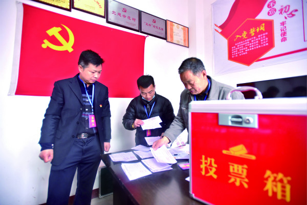 日前,四川省内江市东兴区双桥镇东山村举行村民委员会换届选举大会,纪检监察干部在换届选举统票处进行现场监督。(图片来源:人民视觉)
