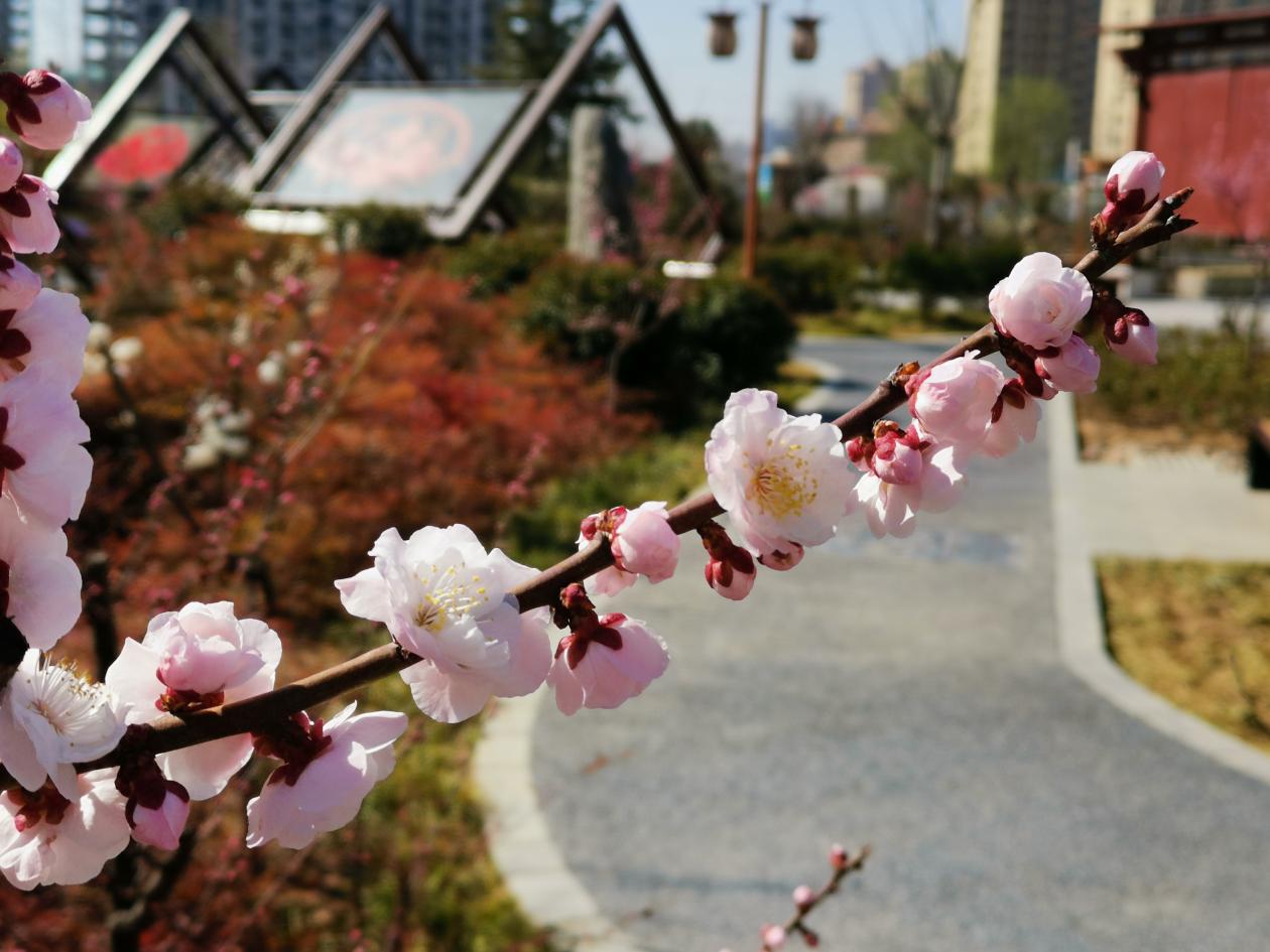 阳春三月梅花开,千里飘香惹人爱。近日,淇滨区梅·廉洁文化主题游园内的梅花争相盛开、春意绽放,盛放的梅花缀满了枝头,花香似有似无令人心醉,细细一闻,一股香气不禁迎面扑来,馨香阵阵,淡雅清新,顿时使人感到心旷神怡,让人们感受到了早春的气息。