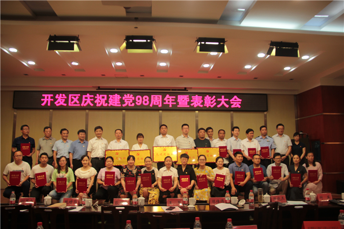 6月27日,市经济技术开发区隆重召开庆祝建党98周年暨表彰大会,对区优秀共产党员、优秀党务工作者、先进党组织进行表彰。