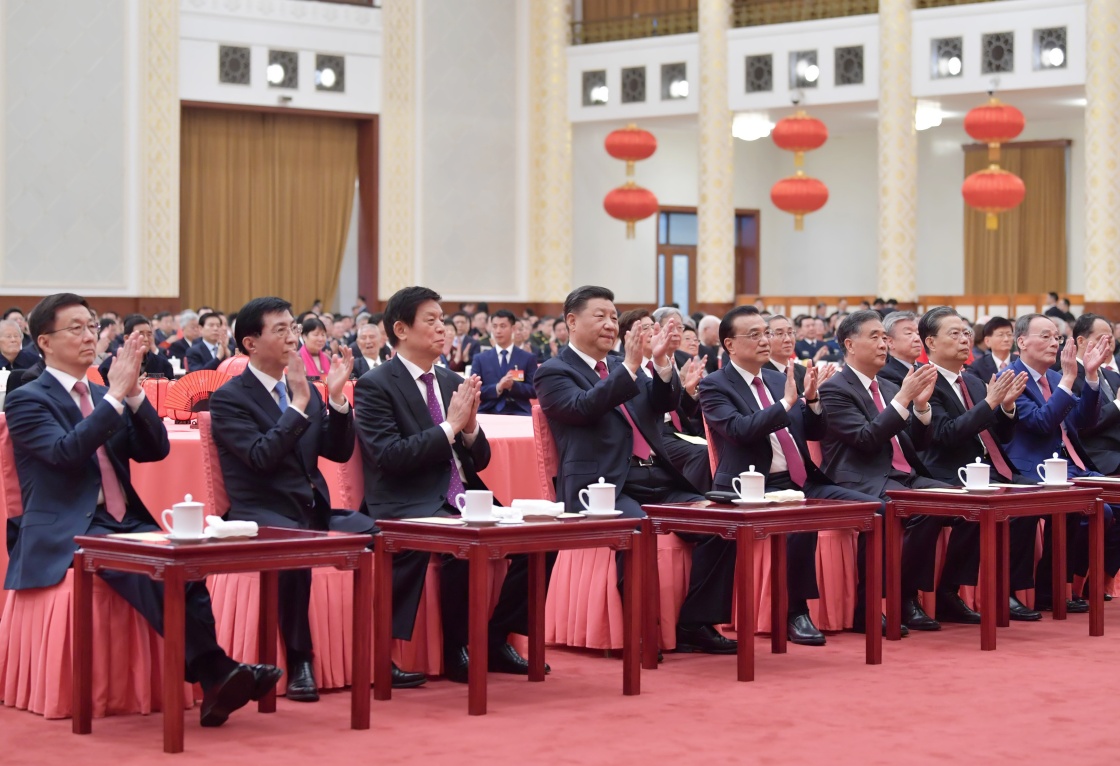 党和国家领导人李克强、栗战书、汪洋、王沪宁、赵乐际、韩正、王岐山等出席团拜会,李克强主持。