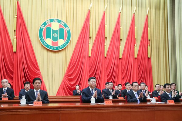 中国法学会第八次全国会员代表大会19日上午在人民大会堂开幕。习近平、李克强、栗战书、王沪宁等党和国家领导人到会祝贺。