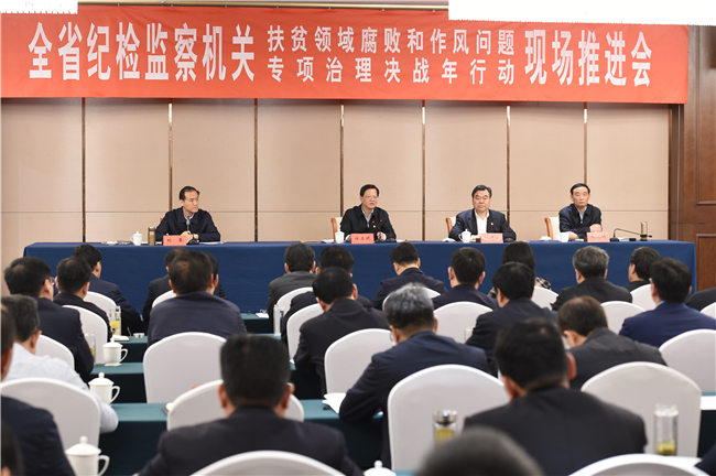 任正晓强调,全省各级纪检监察机关要紧盯决战目标,在破解难题上再发力,确保扶贫工作务实、脱贫过程扎实、脱贫结果真实。要紧紧围绕“贫困县摘帽、贫困村退出、贫困户脱贫”,突出重点、精准发力,实现“问题线索清零、处置机制健全,查处案件办结、以案促改到位,干部作风真改、日常监督常态”的目标任务。要聚焦政治责任落实不到位问题再发力,强化政治监督,加强对党委、政府履行脱贫攻坚主体责任情况的监督检查,紧盯扶贫工作中无视党的政治纪律和政治规矩的问题,坚决同上有政策、下有对策行为作斗争,确保重大政治任务落实落地。要聚焦问题线索处置质量不高问题再发力,全面澄清问题线索底数,对已办结问题线索开展“回头看”,对未办结线索加快办理进度,健全问题线索处置机制,提高扶贫领域问题线索办理的效率和质量。要聚焦重点部位和关键环节腐败问题再发力,持续加大整治力度,确保案件质量,强化通报曝光力度,深化以案促改。要聚焦形式主义、官僚主义问题再发力,坚持问题导向、全面集中整治,坚持监督常在、提醒经常,坚持严管和厚爱结合、激励和约束并重,确保干部作风真改、日常监督常态。