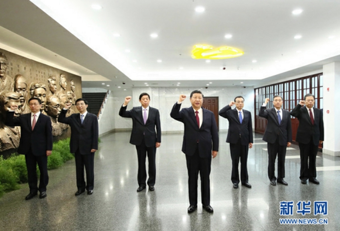 25日,在中共十九届一中全会上,习近平再次当选中共中央总书记,体现了中共全党的意愿。国内外媒体把他描述为一个使中国由富变强的领袖。1949年,毛泽东领导中国人民从“三座大山”的压迫下站了起来。1978年,邓小平提出改革开放,中国人民走上了由穷变富的征程。