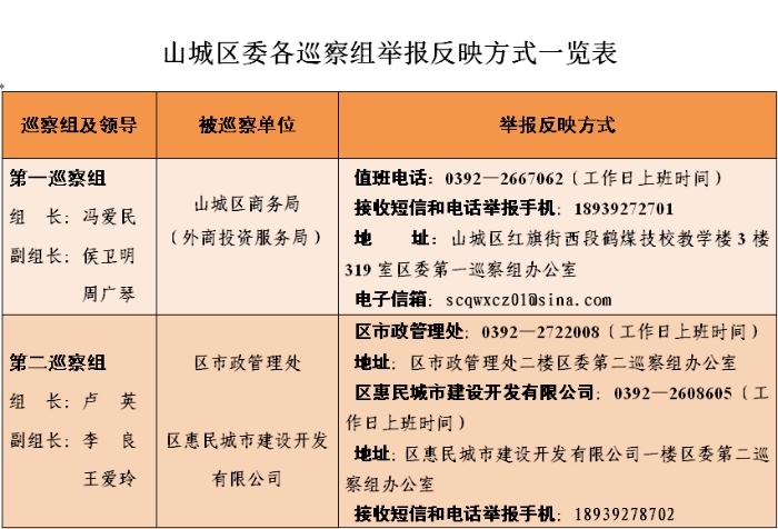 根据巡察工作职责,山城区委巡察组主要受理对上述被巡察对象的举报和反映,其他不属于巡察受理范围的信访问题,按有关规定处理。