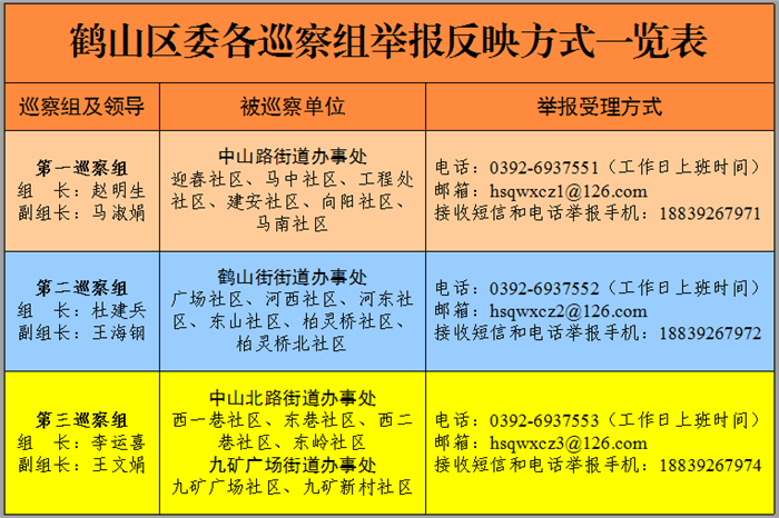 11月15日起,鹤山区委3个巡察组分别对中山路街道办事处迎春社区等18个社区开展为期45天的巡察。