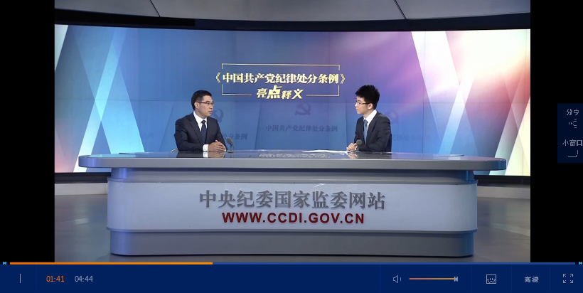 主持人:各位网友,大家好!欢迎收看中央纪委国家监委网站在线访谈。我们继续对新修订的《中国共产党纪律处分条例》进行亮点释义。