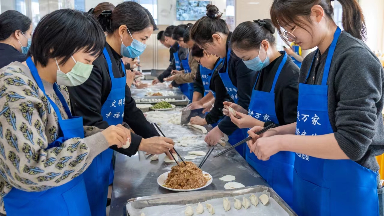 活动现场,干部职工欢聚一堂,分工协作,有的和面、有的拌馅料、有的包饺子,大家一边相互切磋技艺,一边交流着冬至过节习俗,现场气氛和谐,欢声笑语不断。