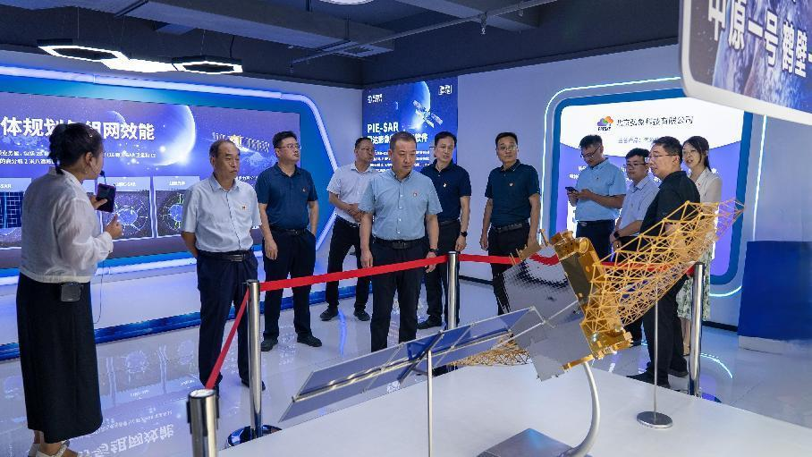 在科创新城规划建设展示中心,党员们详细听取了项目整体规划,了解该项目“科技、现代、生态、建筑”四位一体的设计理念和“5+2”产业布局等;走进航天宏图华中总部展示厅,参观了解最新技术成果和卫星互联产业应用场景,以及应急监测预警系统运行情况;在航天科普基地,参观了解航空航天科普知识,特别是“女娲星座”首发雷达遥感卫星“鹤壁一号、二号、三号”的卫星测控,吸引了大家驻足浏览;在龙芯中科产业基地展厅,详细了解了龙芯中科公司自主研发芯片的历程、上下游企业、产业园信创生态体系等情况,感受到国家科技进步的日新月异。