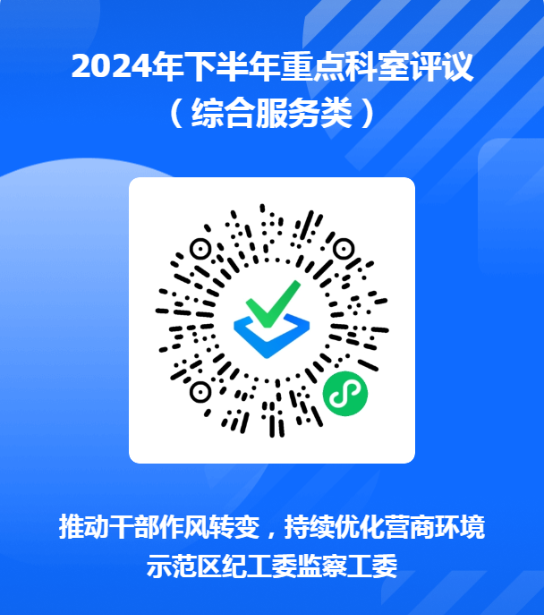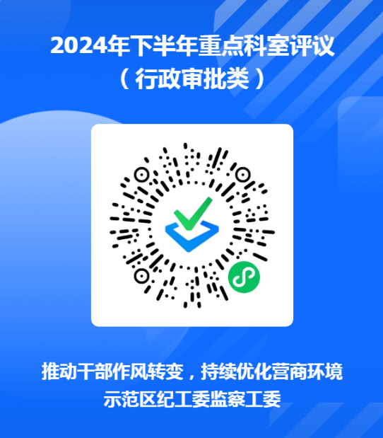 为进一步推动干部作风转变,助力示范区营商环境持续提升,根据《2024年区直单位重点科室评议方案》(济区纪办发〔2024〕14号),现对执法监管、行政审批、综合服务三类区直单位重点科室2024年下半年工作情况开展评议,欢迎社会各界、广大群众积极参与,围绕工作作风、依规履职、政务服务、执法监管、政商关系等方面,对相关科室进行评议。