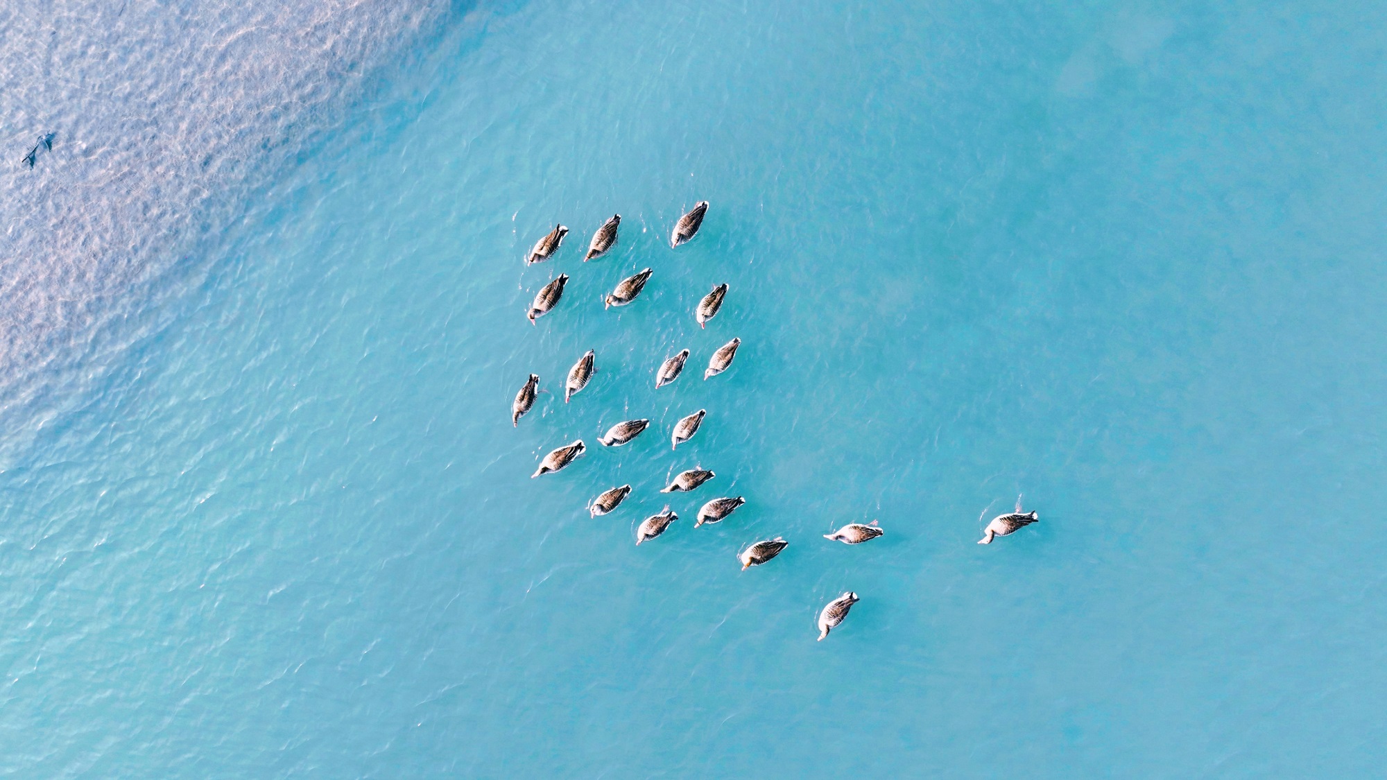 惊蛰至,冰雪融。在新疆维吾尔自治区博湖县博斯腾湖上,候鸟或立于冰沿,或嬉于碧波,或翱于天际,起落之间,让西北大地沉睡的心跳就此搏动。(新疆维吾尔自治区博湖县纪委监委供 米尔扎提•伊敏 摄)