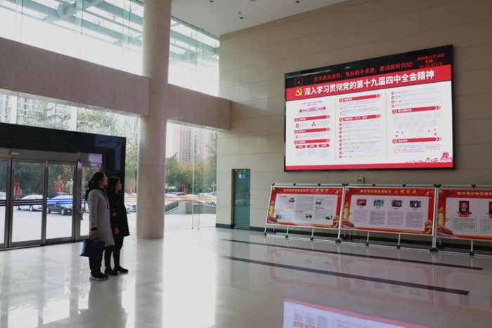 市纪委监委在一楼办公大厅电子屏幕上投放全会精神图解,让纪检监察干部进门便能速览全会精神,方便大家充分利用等电梯等碎片时间学习全会精神,让全会精神随时入脑入心。