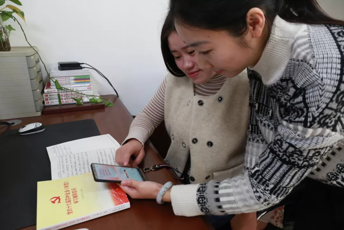 市纪委监委纪检监察干部通过学习强国等平台学习、转发全会公告和权威解读等内容,并在工作群中分享自己的学习体会,做到线上线下同步学习。图为纪检监察干部在讨论交流全会高频词“监督”。
