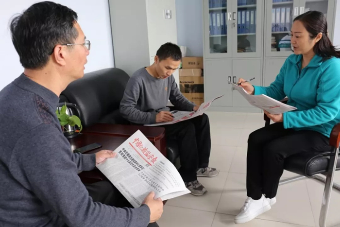 山阳区纪委常委带领所在党小组成员利用午休时间,对照报刊学习党的十九届四中全会精神,并展开了热烈讨论,分享学习心得。