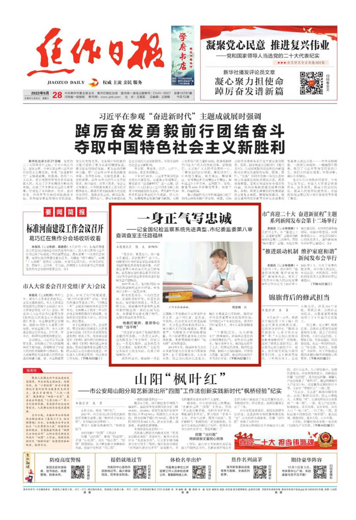 2022年9月28日《焦作日报》头版
