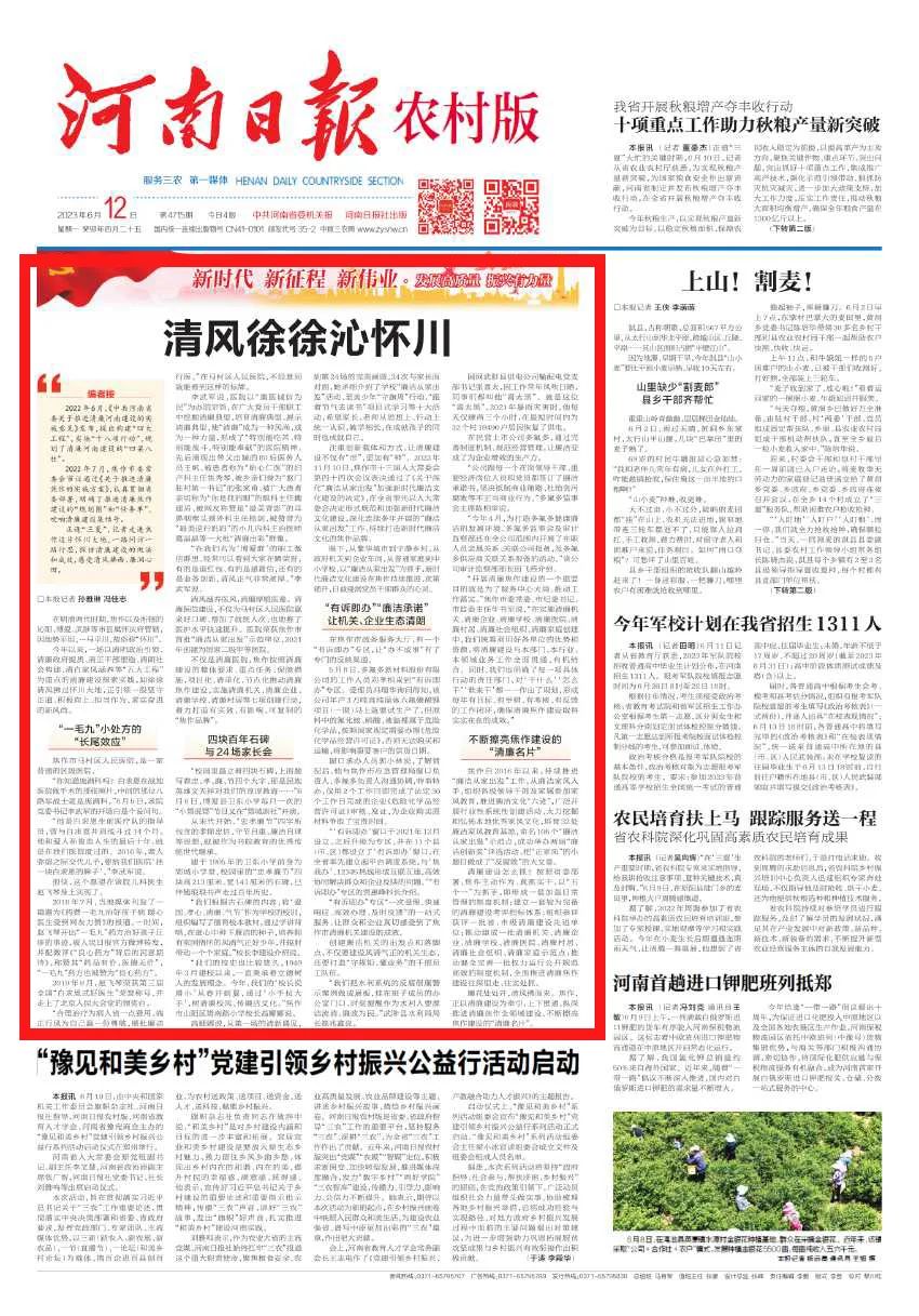 正逢“三夏”,记者走进焦作这片怀川大地,一路问访一路行思,探访清廉建设的做法和成效,感受清风拂面、廉润心田。