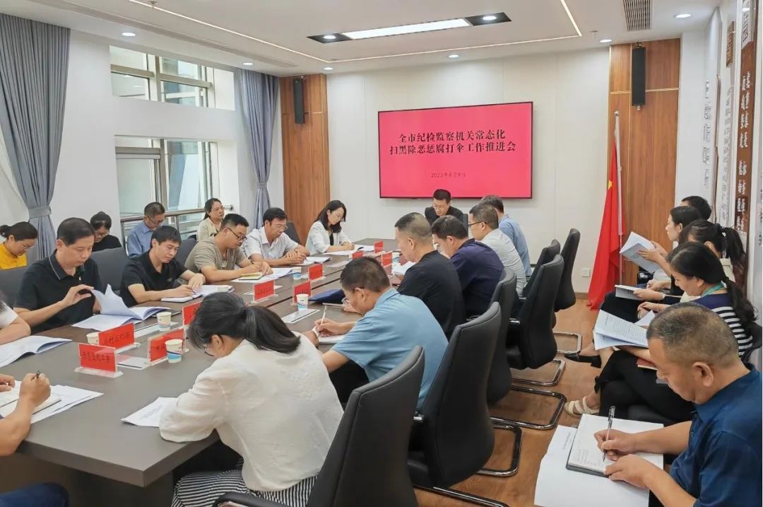 8月9日下午,市纪委监委组织召开全市纪检监察机关常态化扫黑除恶惩腐打伞工作推进会,传达省、市扫黑除恶推进会精神,听取各县(市)区纪委监委扫黑除恶惩腐打伞工作汇报,安排部署全市纪检监察机关扫黑除恶下步重点工作。市纪委常委黄栋出席会议并讲话,各县(市)区纪委监委扫黑办主任、相关监督检查室主任,市纪委监委扫黑办全体人员参加会议。