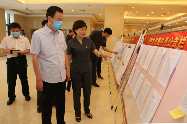 牛书军一行先后实地查看了法院裁判文书集中展示、廉政谈话室、涉黑刑事案网上宣判和李玉香家事审判工作室,召开了座谈会,听取了市中院党组书记、院长王波关于履行全面从严治党主体责任的汇报和派驻纪检监察组关于履行监督责任情况的汇报。