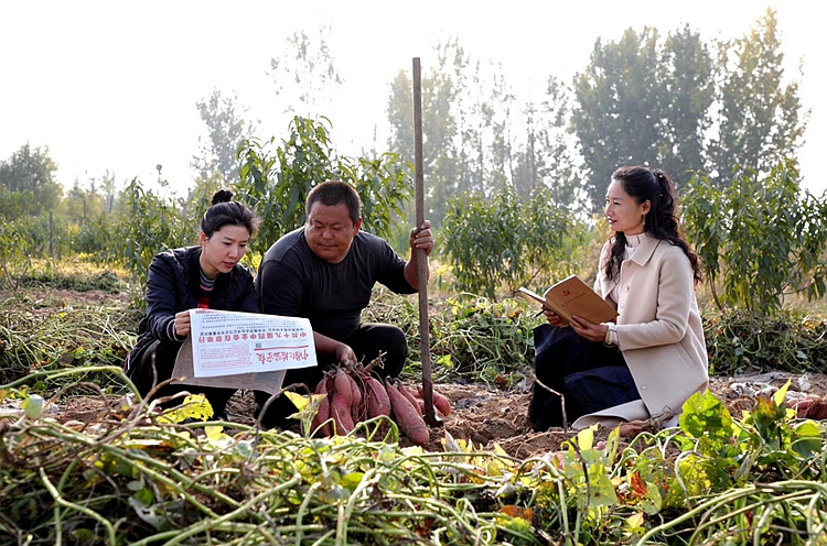 图为11月4日,该区纪检监察干部走进乡间地头向村民宣讲十九届四中全会精神