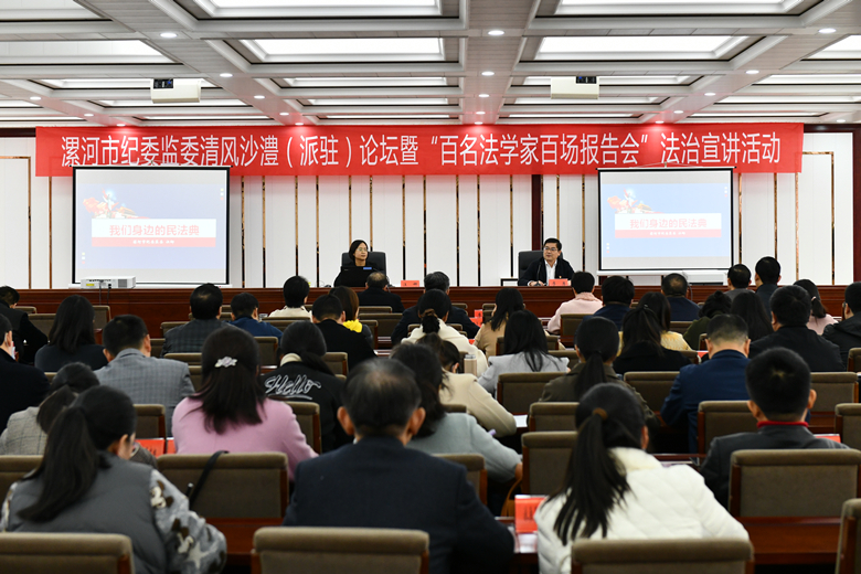 11月20日下午,市纪委监委举办第三期“清风沙澧(派驻)论坛”暨市直机关“百名法学家百场报告会”法治宣讲活动。市纪委常委、秘书长,市监委委员李勇同志主持报告会,市纪委监委机关、派驻纪检监察组共112名党员干部参加学习。
