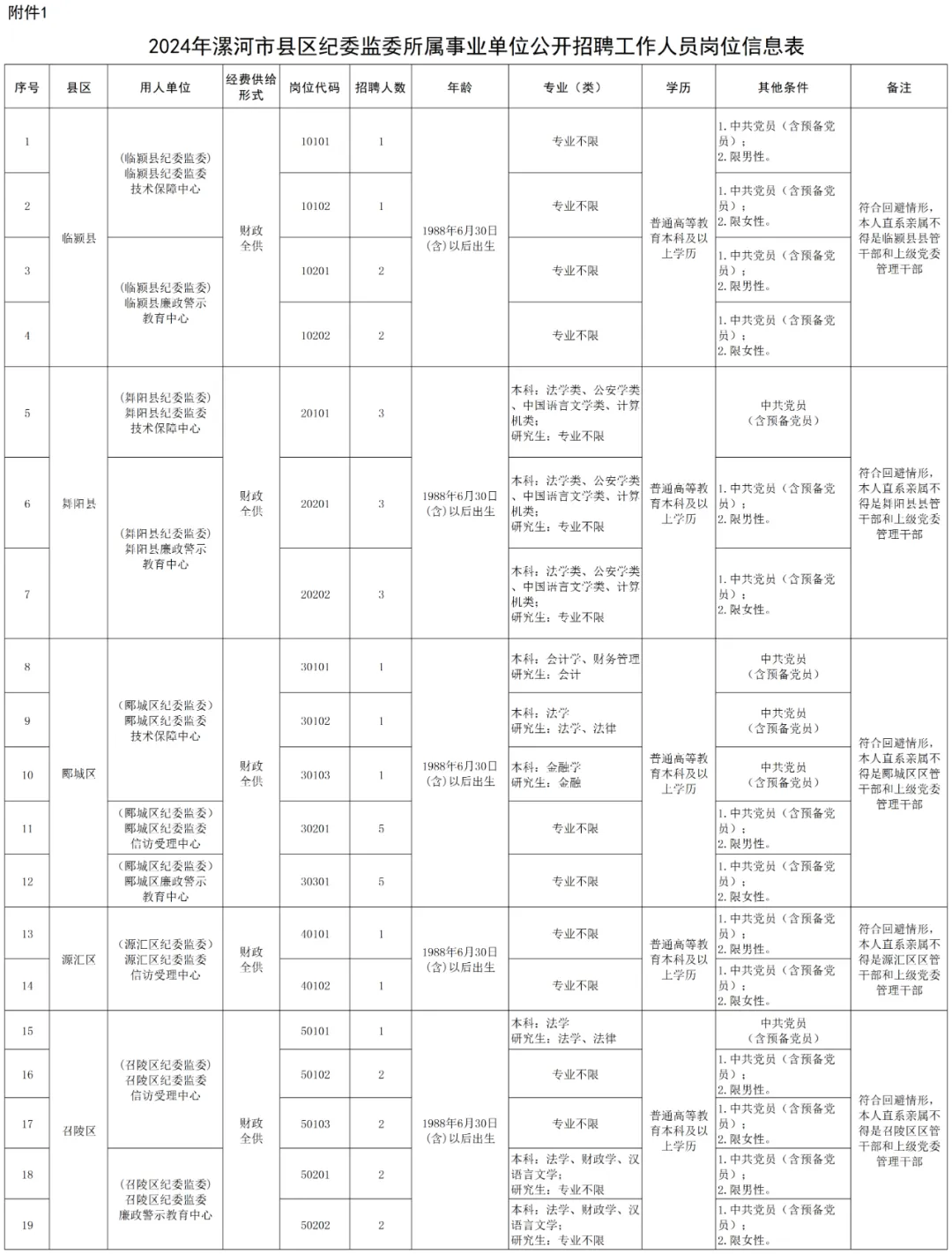2024年漯河市县区纪委监委所属事业单位公开招聘工作人员公告