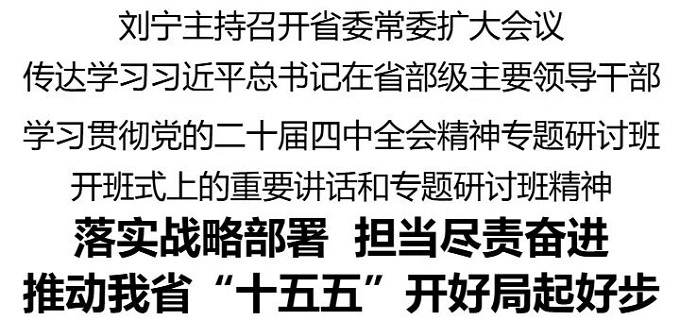 1月24日,省委书记刘宁主持召开省委常委扩大会议,传达学习习近平总书记在省部级主要领导干部学习贯彻党的二十届四中全会精神专题研讨班开班式上的重要讲话和专题研讨班精神,研究我省贯彻落实工作。