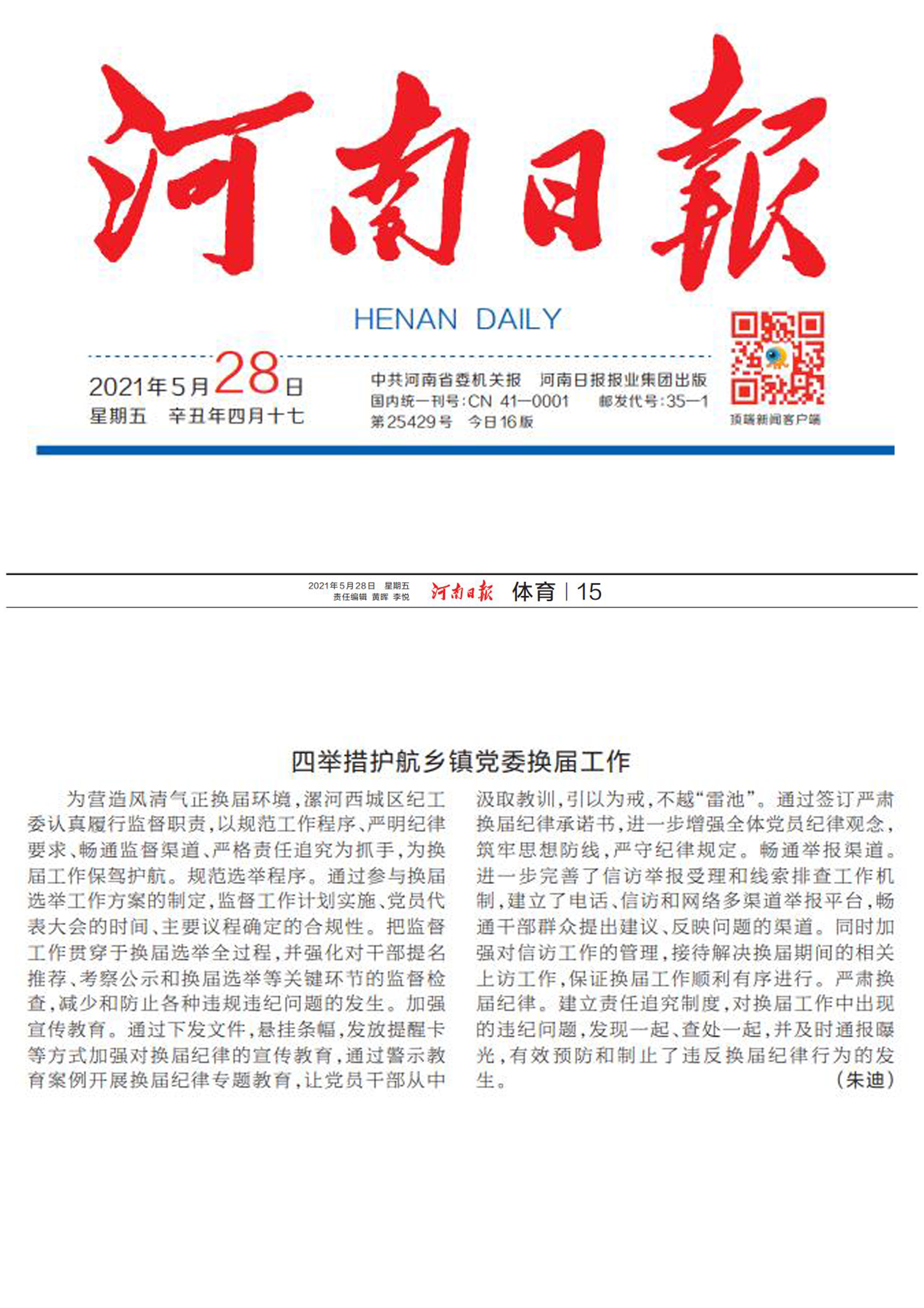 【河南日报】四举措护航乡镇党委换届工作