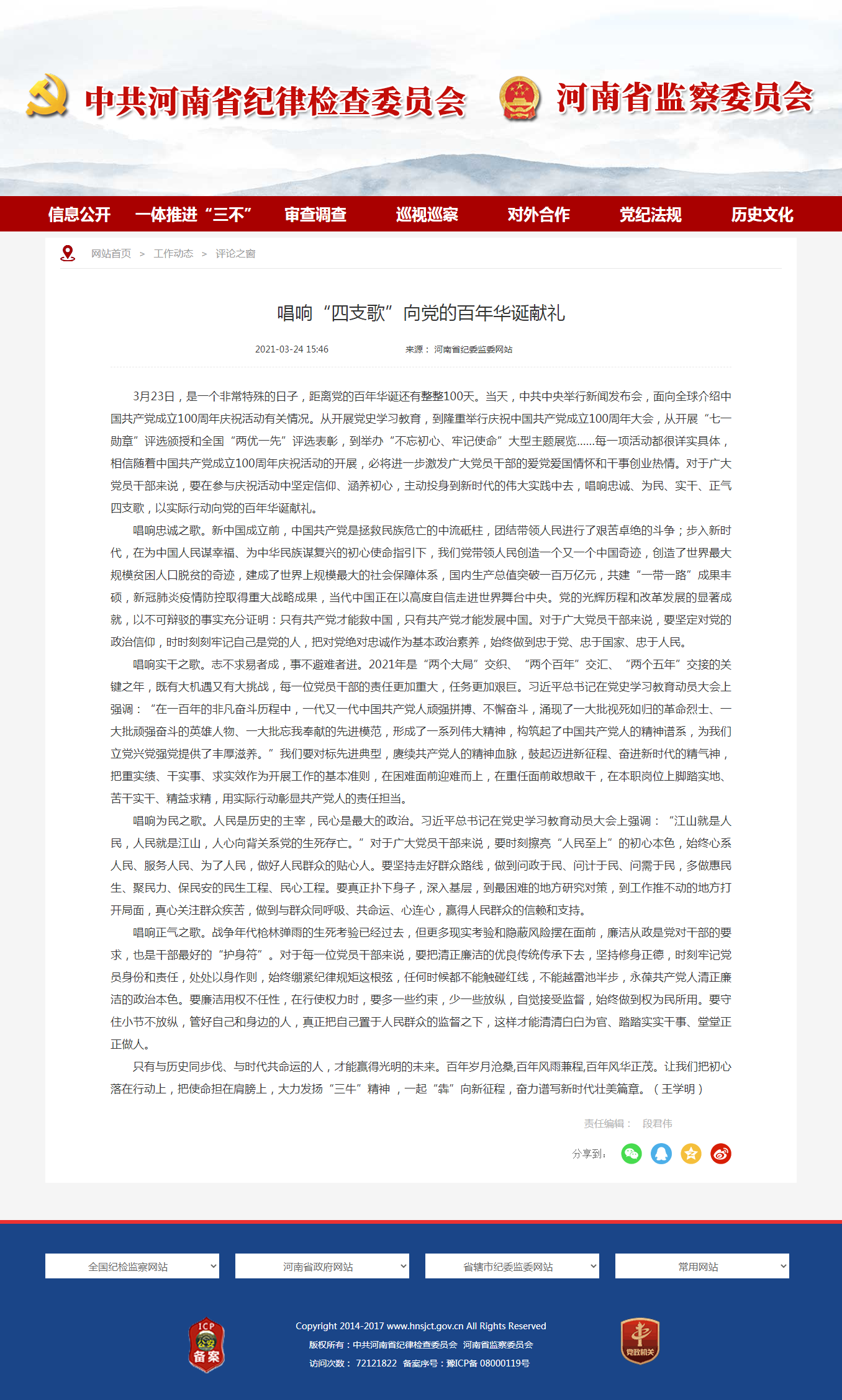 【河南省纪委监委网站】唱响“四支歌”向党的百年华诞献礼