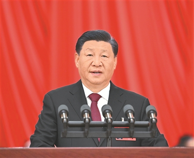 习近平代表第十九届中央委员会向大会作了题为《高举中国特色社会主义伟大旗帜为全面建设社会主义现代化国家而团结奋斗》的报告。习近平指出,中国共产党第二十次全国代表大会,是在全党全国各族人民迈上全面建设社会主义现代化国家新征程、向第二个百年奋斗目标进军的关键时刻召开的一次十分重要的大会。大会的主题是:高举中国特色社会主义伟大旗帜,全面贯彻新时代中国特色社会主义思想,弘扬伟大建党精神,自信自强、守正创新,踔厉奋发、勇毅前行,为全面建设社会主义现代化国家、全面推进中华民族伟大复兴而团结奋斗。
