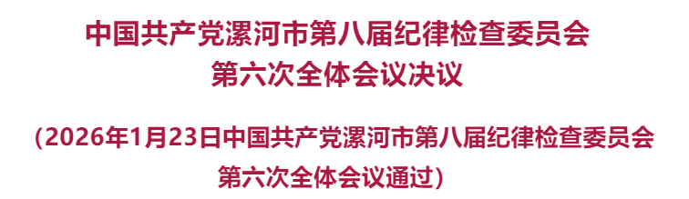 中国共产党漯河市第八届纪律检查委员会第六次全体会议,于2026年1月23日召开。出席全会的有市纪委委员31人,列席610人。