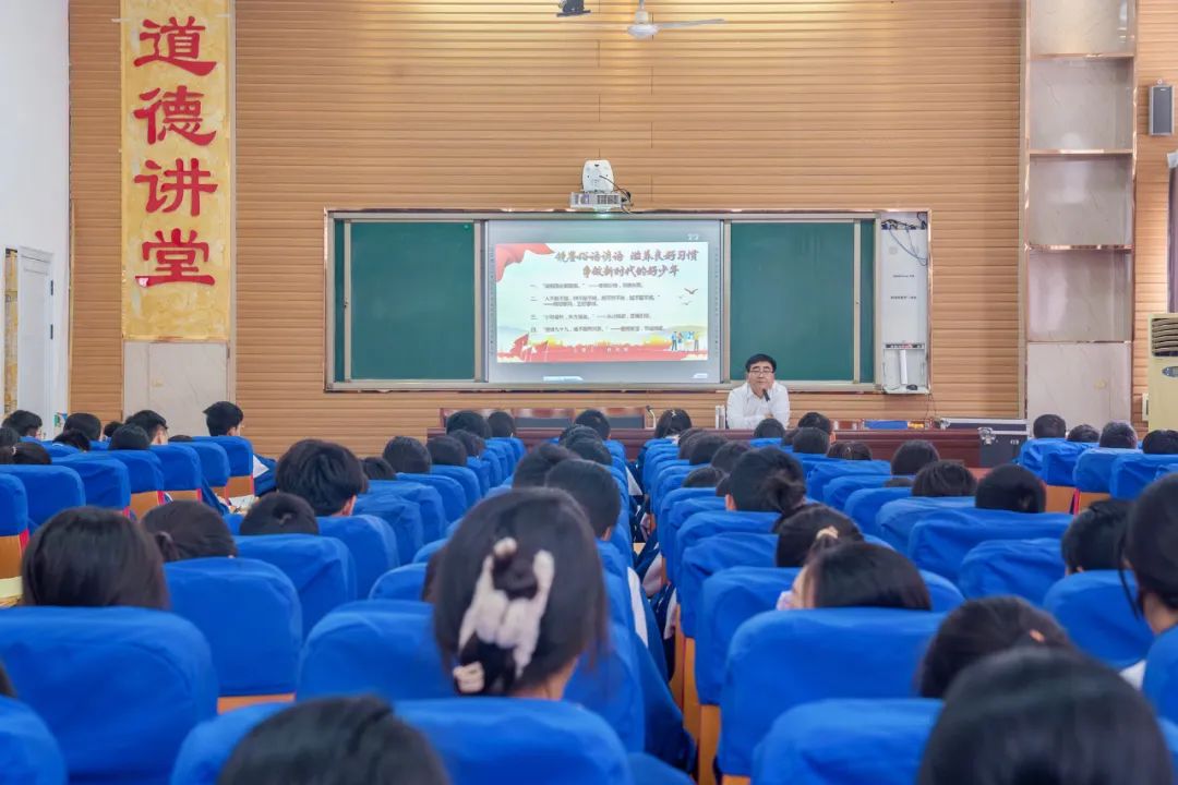 “同学们,你们现在正是学知识、长本领的阶段,要在成长中深扎爱国情怀,在拼搏中树立远大志向……”