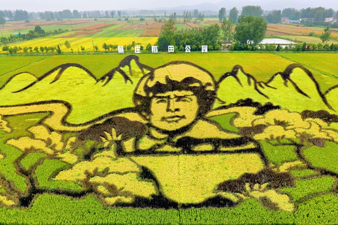 九月,确山县留庄稻田公园迎来了一年中最富诗意的时刻。广袤的稻田里,以不同颜色水稻为“颜料”精心绘制的杨靖宇将军稻田画,在微风中静静铺展。(确山县纪委监委 王敬一 摄)