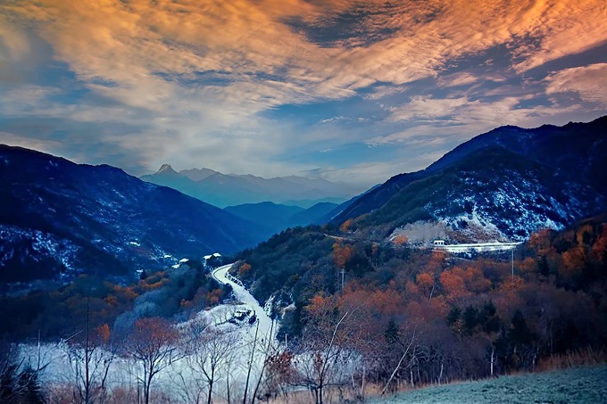 雪落无声,让这处山谷褪去了往日的斑斓,远山的棱线覆上薄雪,在冷暖交织的云霞下尽显苍劲风骨。近处的林木抖落碎雪,以橙红与深褐的交织,在冬意里倔强舒展着生命的余温。(卢氏县纪委监委 冯新 摄)