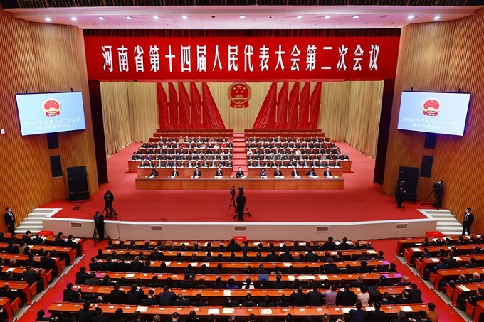 1月31日,河南省第十四届人民代表大会第二次会议在郑州胜利闭幕。省委书记、省人大常委会主任楼阳生主持会议并讲话。