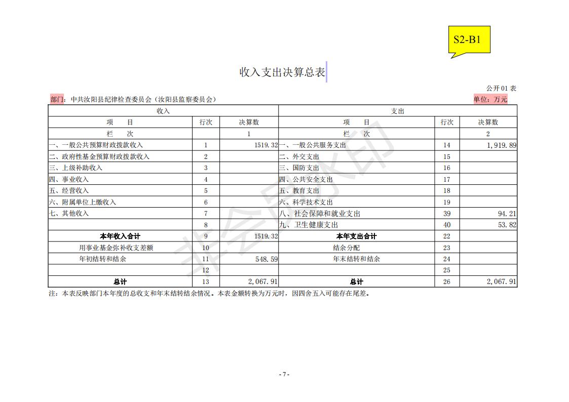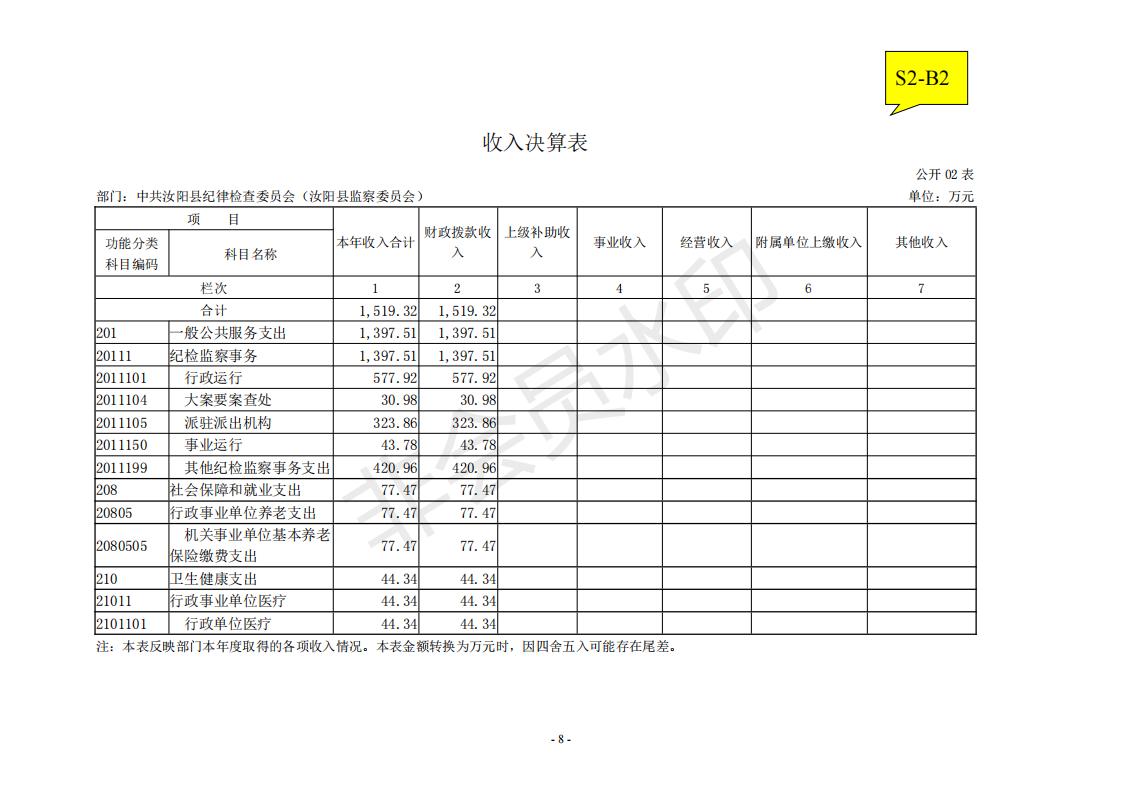 汝阳县纪委监委2020年度决算公开