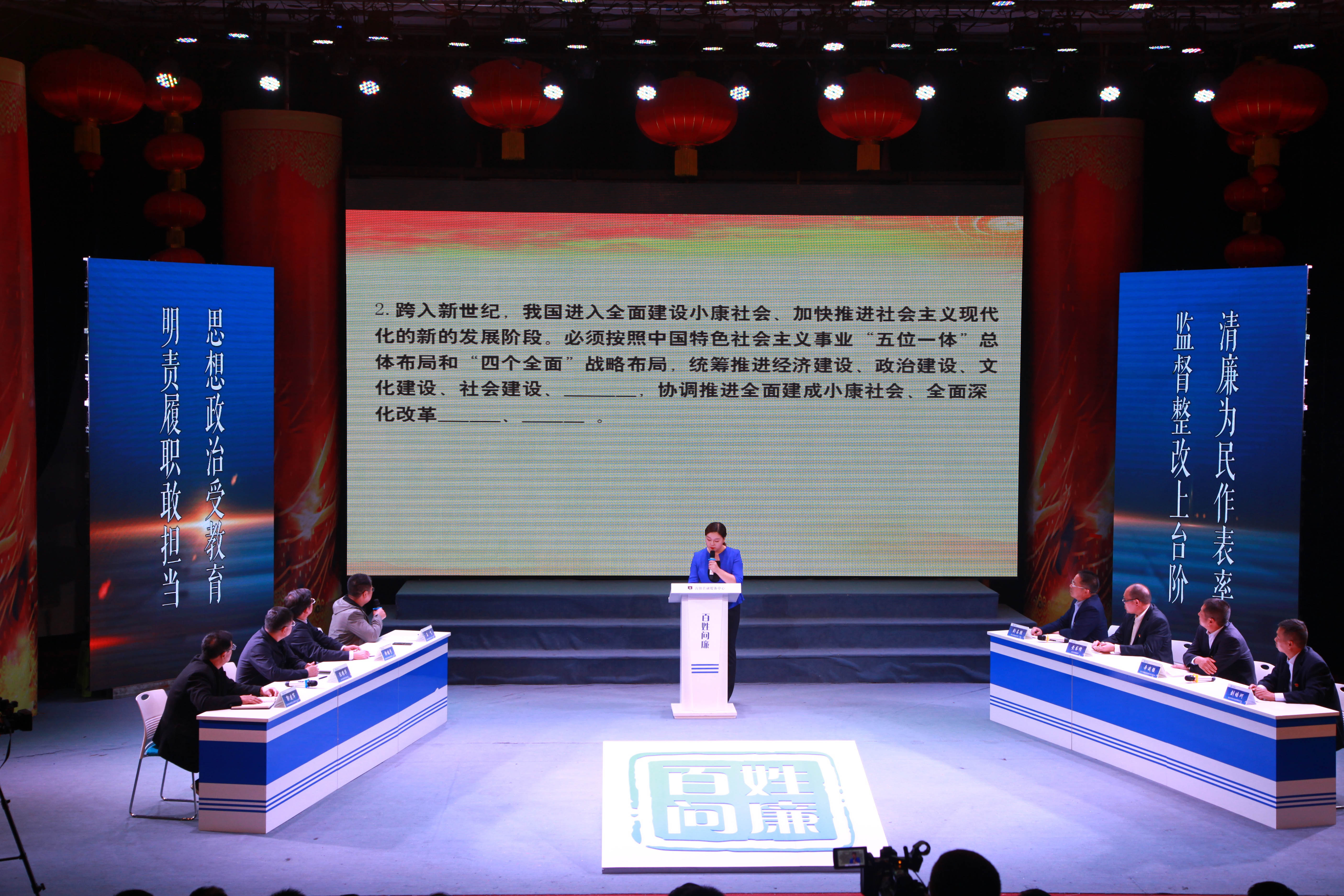 10月29日,由县委主导推动,县纪委监委和县融媒体中心联合推出的电视廉政专题栏目《百姓问廉》正式开播。本栏目是为贯彻落实省委一体推进不敢腐不能腐不想腐深化以案促改工作会议精神,结合洛阳市纪委在全市实施五微并治深化村(社区)组干部以案促改工作要求,深入落实县委“一讲两守三推进”专项活动和以案促改制度化、常态化的要求而推出的。栏目共分“警示教育、现场问答、知识测试”三个环节,主要通过观看警示教育片、问廉单位对现场观众的提问进行回答、对党章党规党纪进行测试等环节,强化党员干部纪律规矩意识,提升人民群众对行政执法的知情度,倒逼相关单位担当尽责、依法行政,推动全面从严治党不断走向深入。