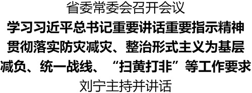 2月14日,省委书记刘宁主持召开省委常委会会议,学习习近平总书记重要讲话重要指示精神,贯彻落实防灾减灾、发展体育事业、整治形式主义为基层减负、统一战线、“扫黄打非”等工作要求。