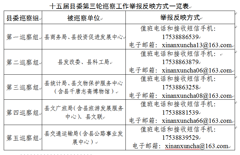 按照县委统一部署,近期县委派出5个巡察组,对县发改委、县科工局、县交通运输局(含县公路事业发展中心)、县商务局、县统计局、县投资促进发展中心、县文广旅局(含县旅游发展服务中心)、县文物保护服务中心(含县千唐志斋博物馆)、县文联开展常规巡察。现将有关事宜公告如下: