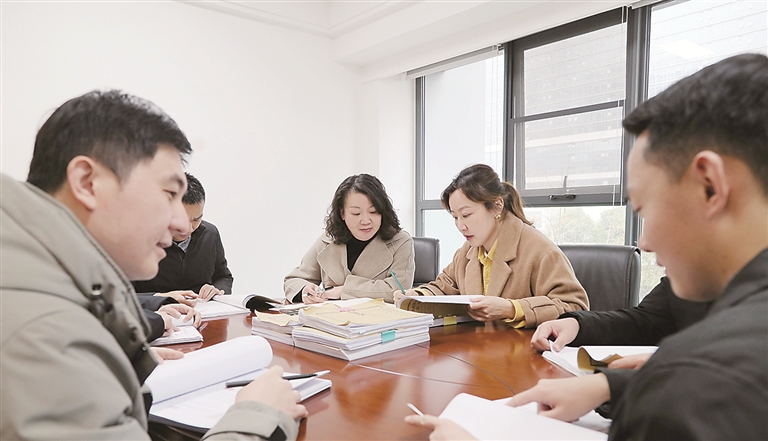 图为成都市纪委监委第十一纪检监察室和案件审理室工作人员围绕何立祥案有关问题进行研讨。苏尧 摄