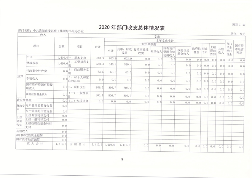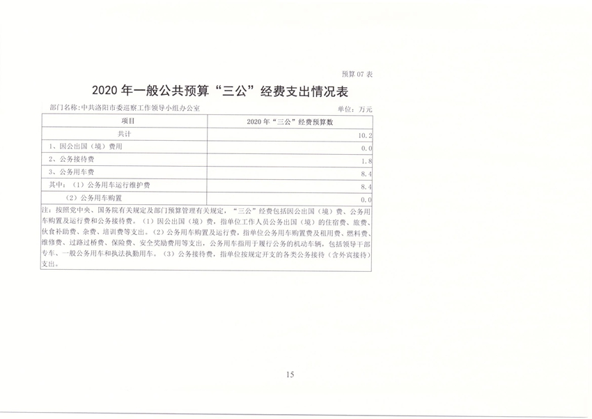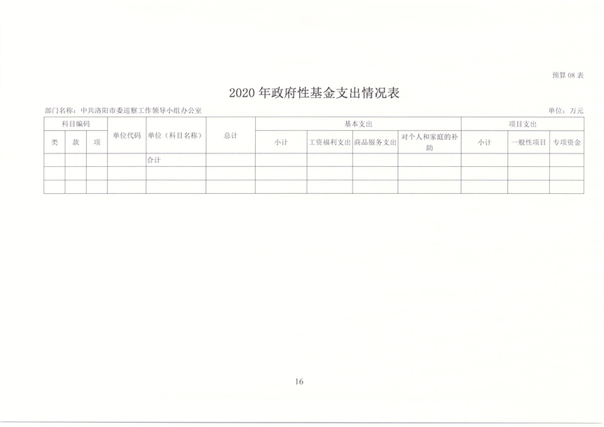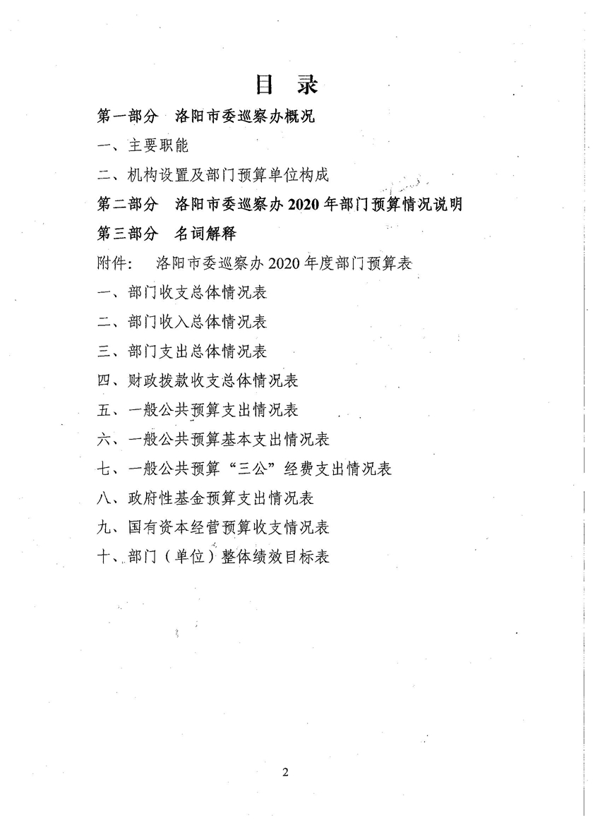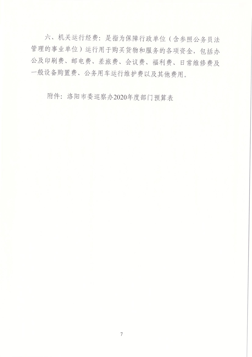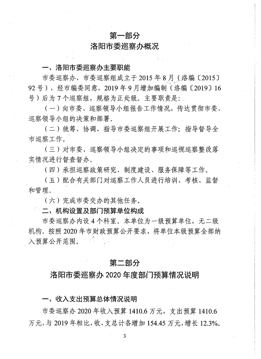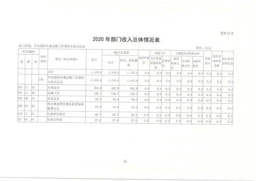 洛阳市委巡察办2020年部门预算公开