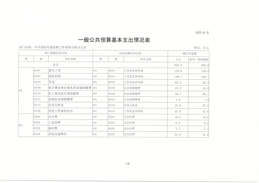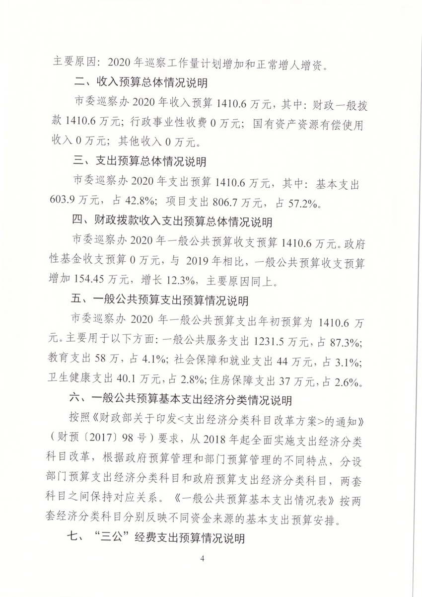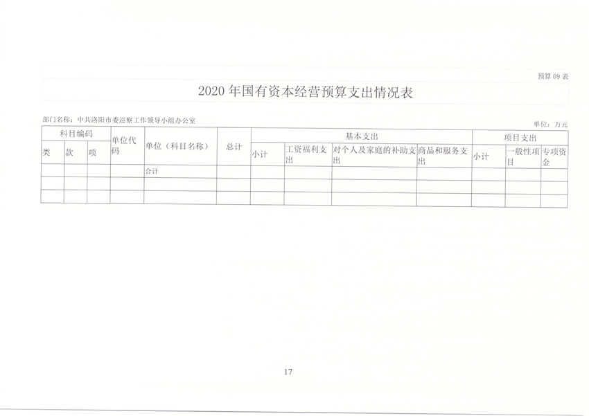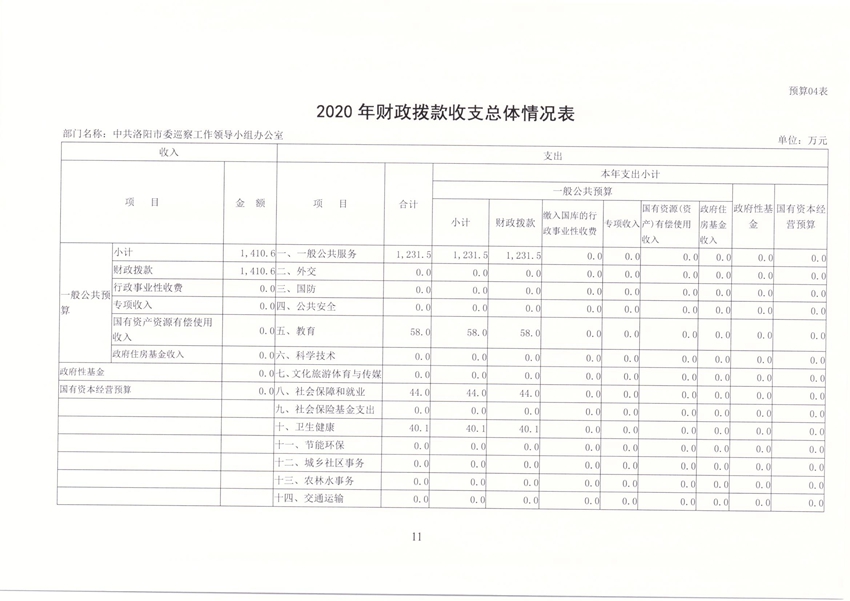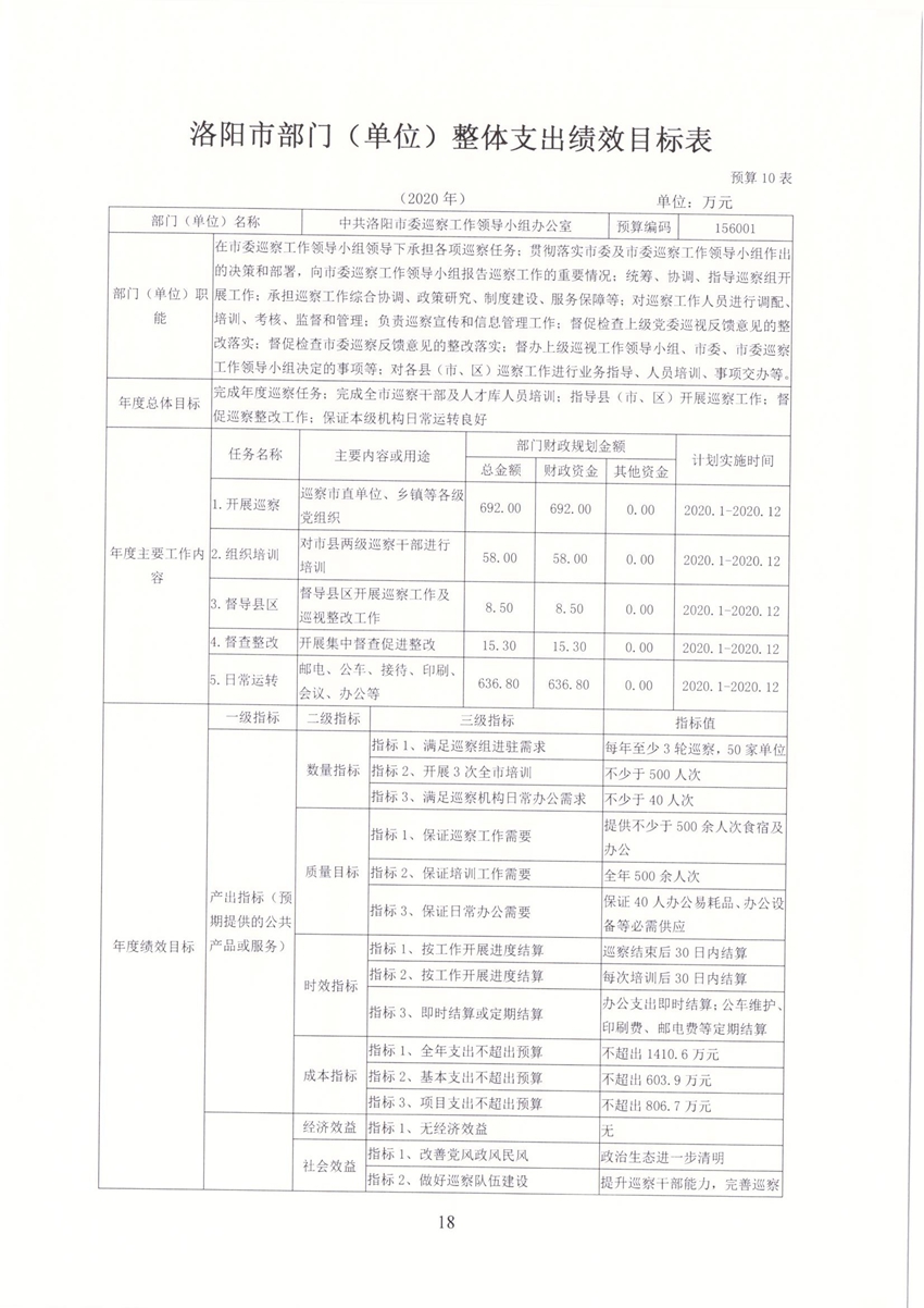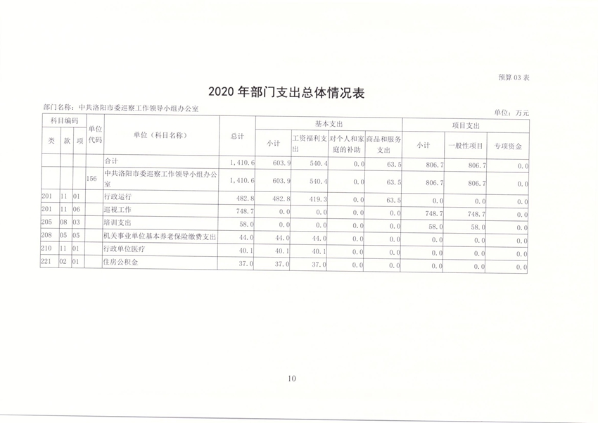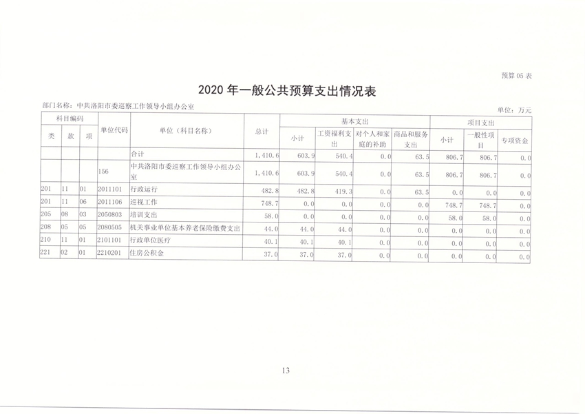 洛阳市委巡察办2020年部门预算公开