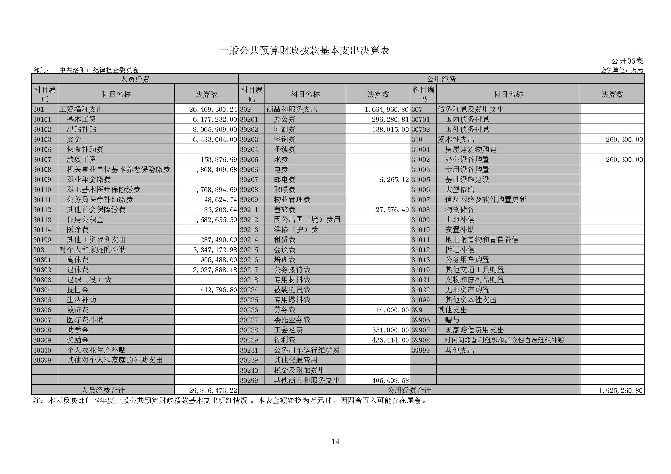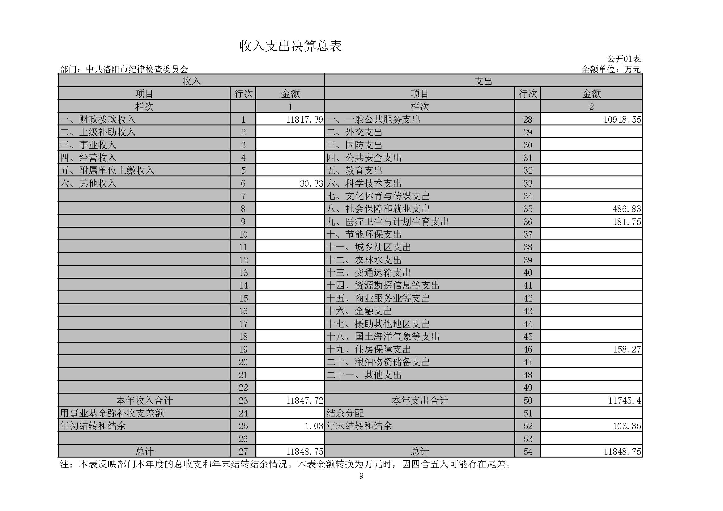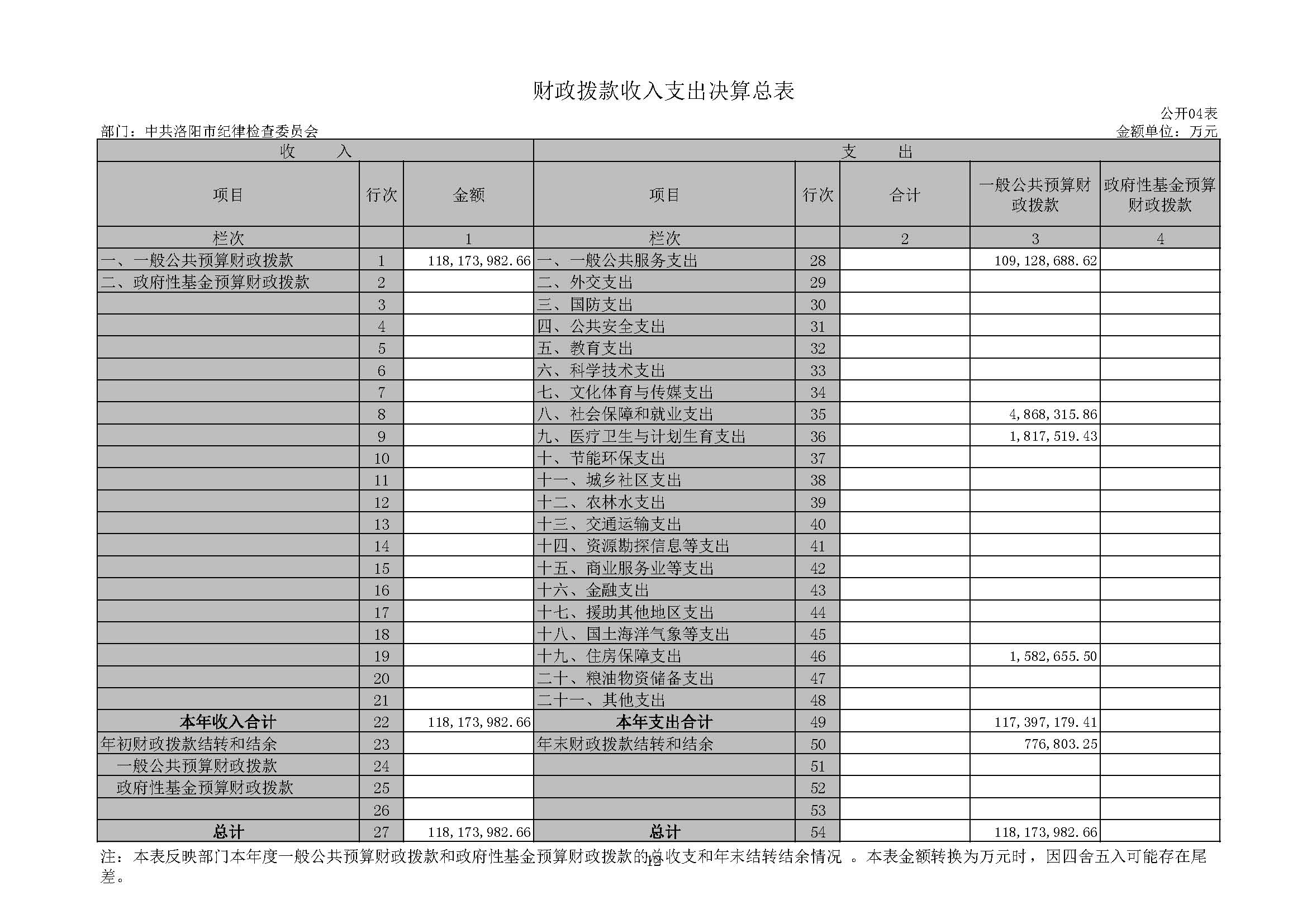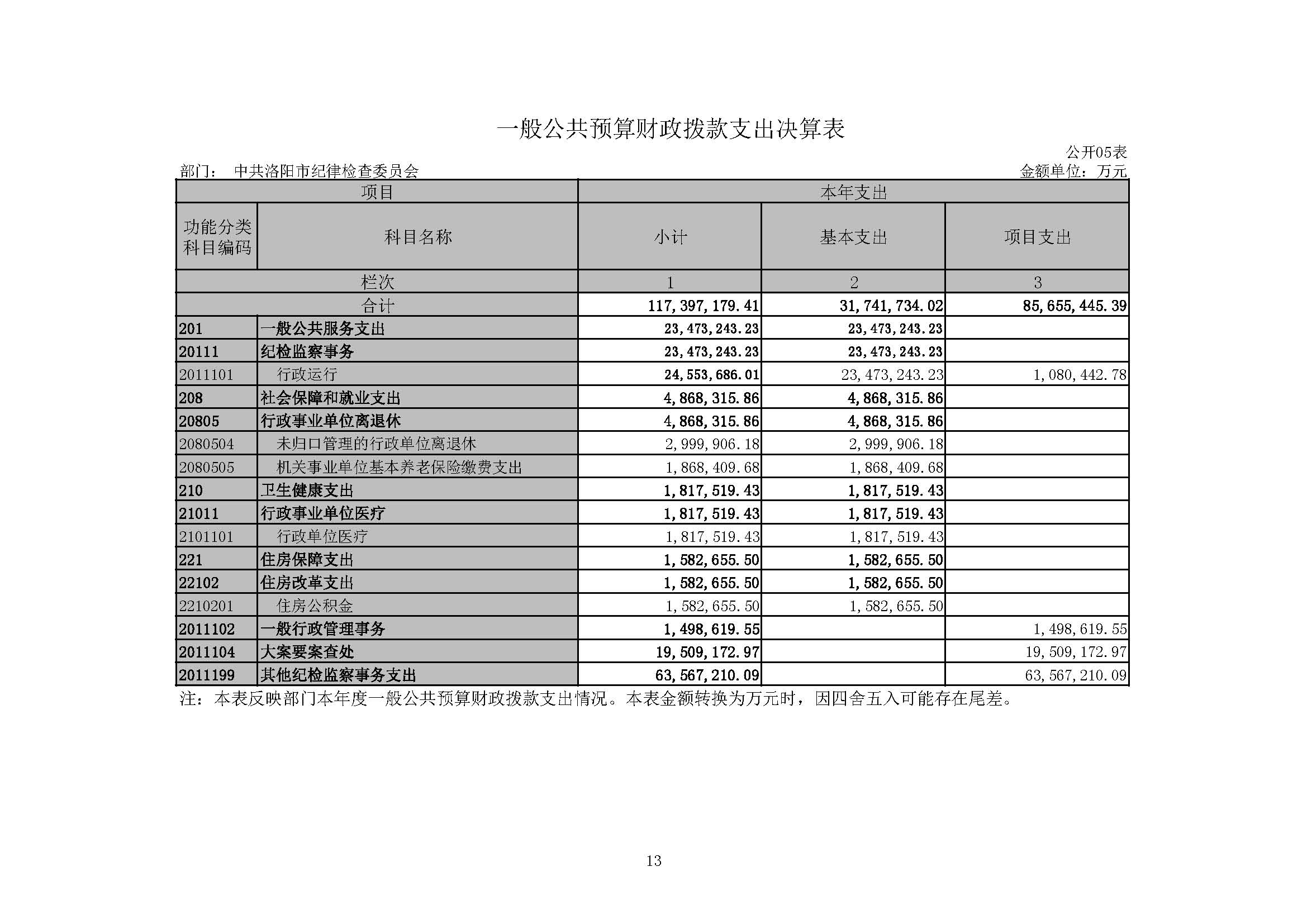 洛阳市纪委监委2019年度部门决算公开