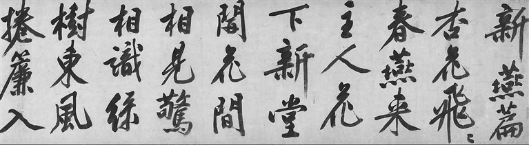 也许是李应祯当年的一声“咤”,推动了文徵明学古人却不拘泥于古人。他的行书极富创新精神,独出新意。有一幅《题金焦落照图诗卷》,笔画舒展却不失古人规矩,字体飘逸又不失沉稳之感,没有恢弘的气势,却具晋唐书法的风致,在遵循古人的法度之中,做到了意态生动。