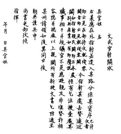 南宋行政法典《庆元条法事类》中保留了当时官员的“射阙状”。