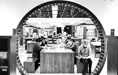 重庆,读者在解放碑新华书店内阅读。新华社发