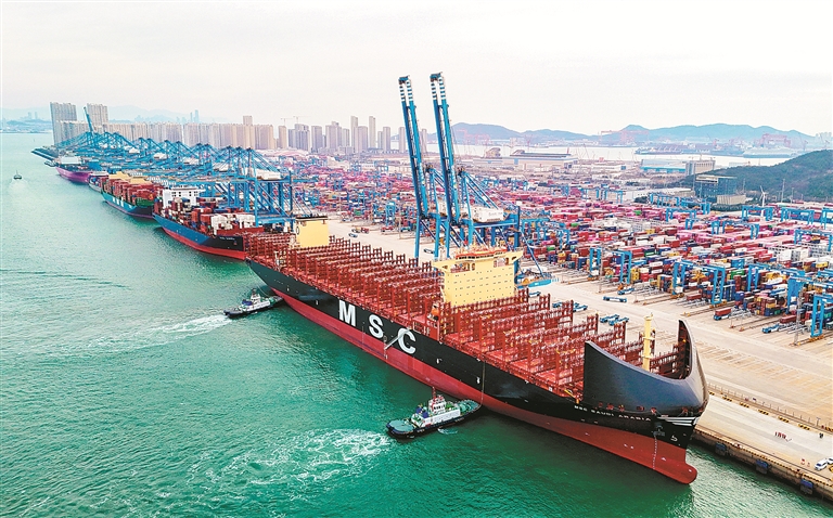 从一个个集装箱的“迁徙”中,可以窥见贸易流向与产品价值的变化。当前,高附加值产品和绿色清洁能源产品出口需求稳定,成为拉动港口业务的重要力量。2025年前11个月,我国机电产品占出口比重超六成,集成电路和汽车出口增长明显,高技术、绿色产品正通过港口源源不断地输往国际市场。同时,各个港口积极开拓新兴市场航线,比如宁波舟山港开通首条北极航道航线,北部湾港开通至中东国际航线,为外贸拓展了新的增长空间。