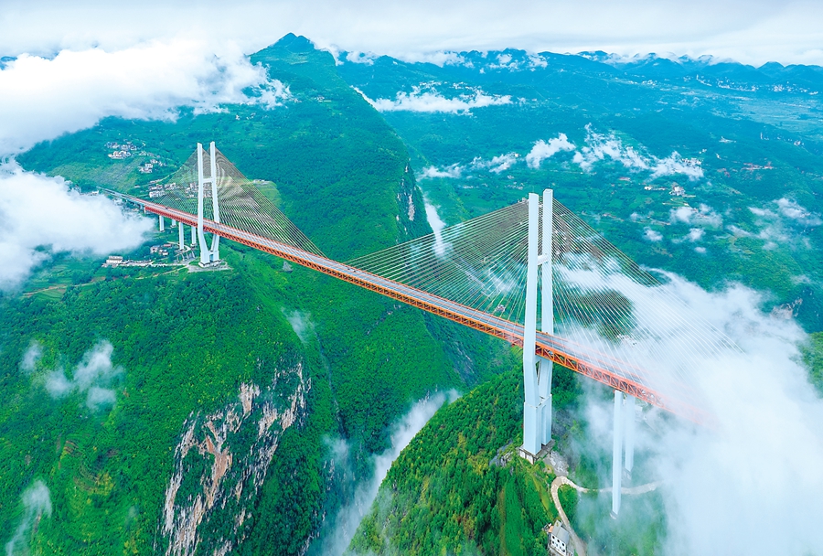 图为近日拍摄的贵州省北盘江第一桥,该桥获“世界最高桥”之称,载入世界纪录大全史册。