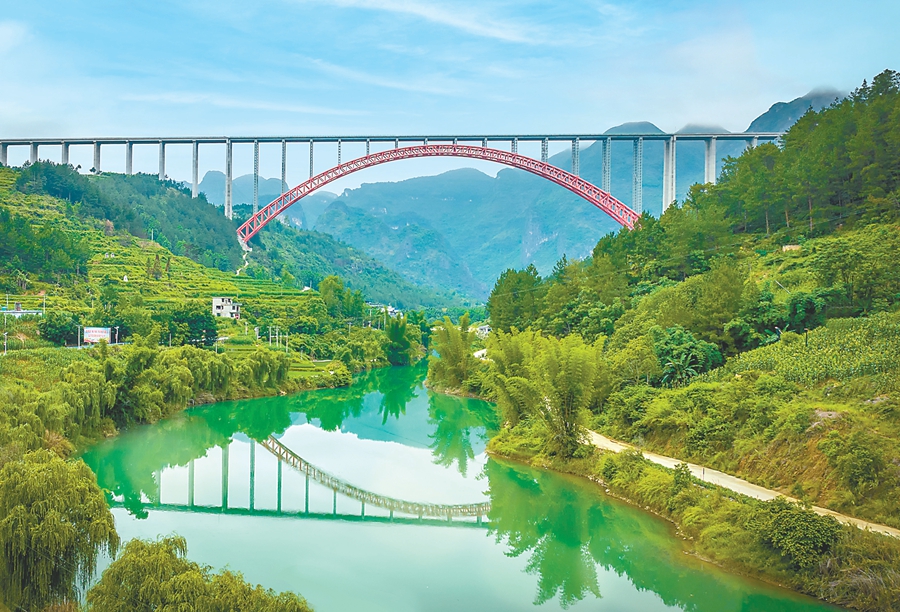 一座座大桥,跨越山河,将天堑变通途。重峦叠嶂、沟壑纵横的贵州,由于独特的自然地貌,是世界上特大峡谷桥分布最密集、数量最多的地区。世界前100座高桥中,有近一半在贵州。位于贵州关岭布依族苗族自治县的坝陵河大桥,全长2237米、桥面距水面高达370米,是世界首座千米级山区钢桁梁悬索桥;横跨黔南州槽渡河峡谷两岸的平塘特大桥,桥体采用造型优美的空间钻石形索塔,桥下河面最宽处达到百米,被称为“天空之桥”;正在建设的六安高速花江峡谷大桥,全长2890米,主桥跨径1420米,桥面与水面垂直距离达625米,建成后将成为山区第一跨、世界最高桥……“万桥飞架”构筑起贵州一座座崭新的物理地标,更是迈向中国式现代化进程中一个个响亮的音符。